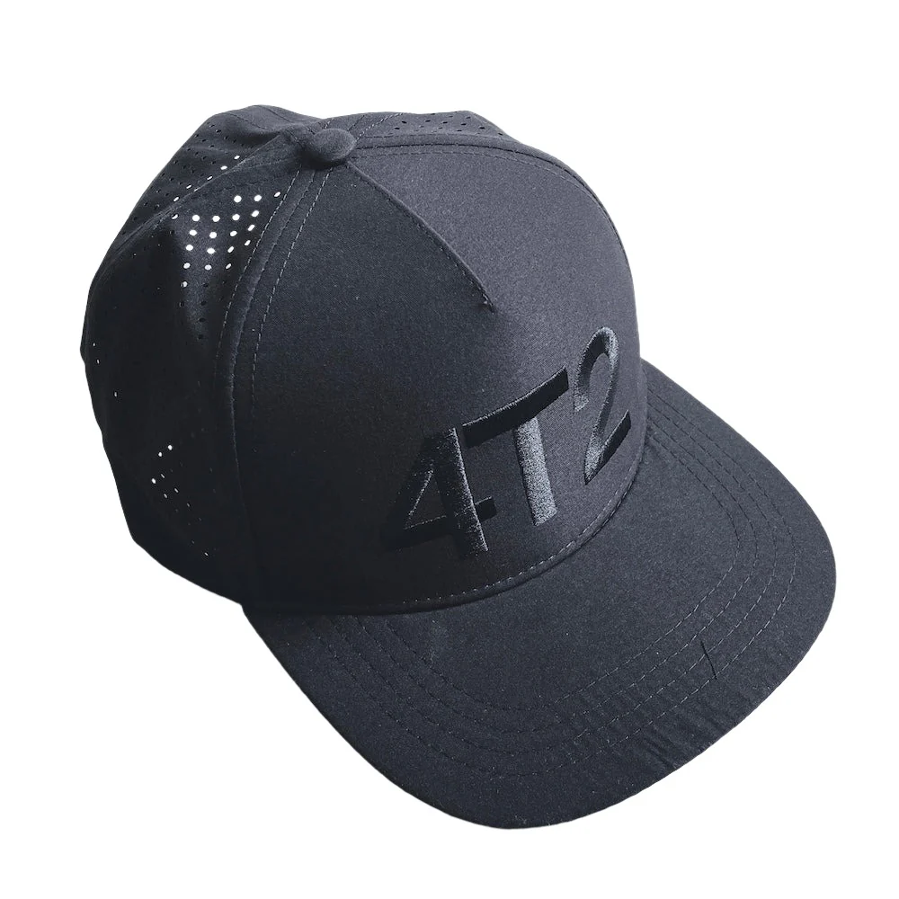 4T2 Cappellino tecnico da running Cappellino stile Trucker con visiera piatta, dotato di chiusura regolabile a pressione e inserti traspiranti. Con logo ricamato del brand 4T2 sul davanti. Questo cappellino è realizzato da BOCO Gear, direttamente da Boulder, Colorado, capitale mondiale dell’ultra e del trail running.