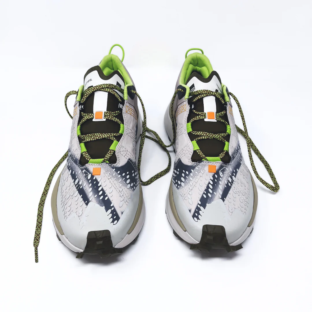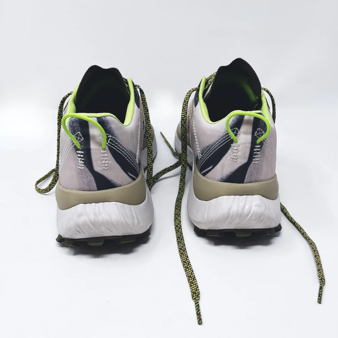 La scarpa è costruita per accompagnarti a lungo: morbida, stabile e con grip sicuro, ma leggera e minimale per mantenere un contatto naturale con il terreno. Il design “Lone Wolf” aggiunge dettagli verdi che richiamano la natura.