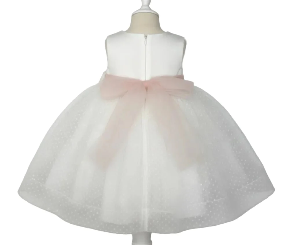 Abitino cerimonia Bella Brilli., il capo perfetto per rendere speciale ogni momento importante della tua bambina. Realizzato in delicato tulle, questo vestito cattura l’eleganza con una raffinata cinta decorata da fiori rosa e bianchi che aggiungono un tocco di romanticismo e femminilitร . Ideale per battesimi, comunioni e cerimonie, garantisce comfort e stile senza compromessi. Un abito che trasforma ogni occasione in un ricordo indimenticabile.