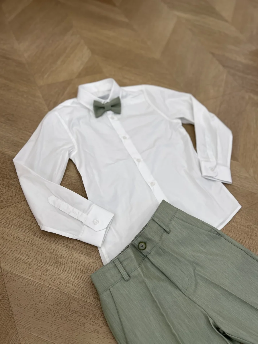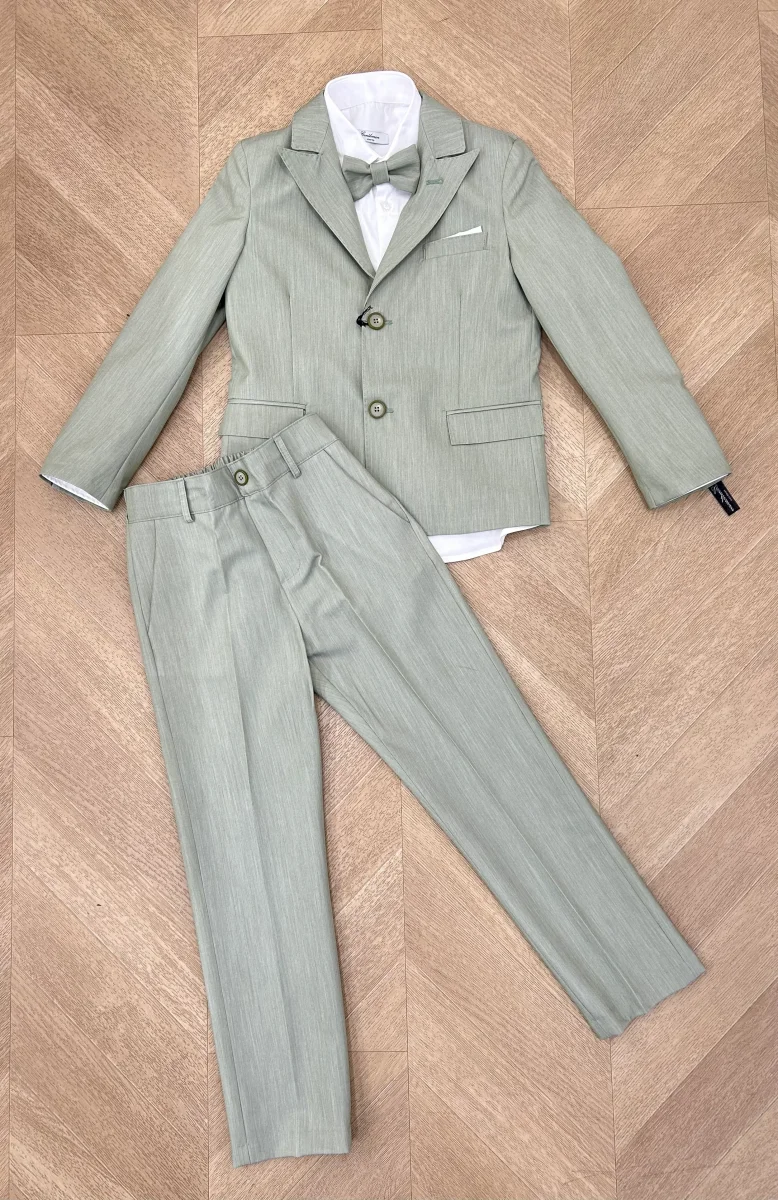 Abito elegante in tonalitร  salvia, perfetto per occasioni speciali e momenti importanti. Il modello Adler combina stile raffinato e comfort, ideale per il tuo bambino che vuole sentirsi sofisticato. Realizzato con attenzione ai dettagli, questo abito garantisce un’eleganza senza tempo. Perfetto per cerimonie, feste e eventi formali dove il tuo ragazzo vuole fare bella figura.