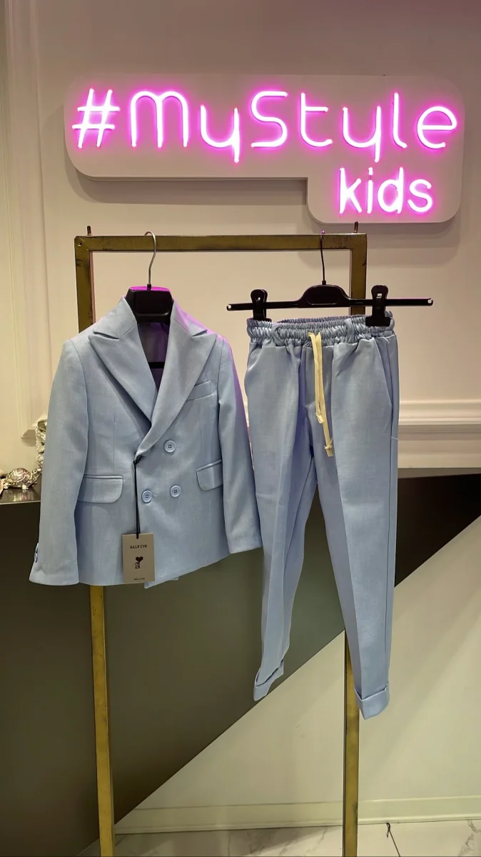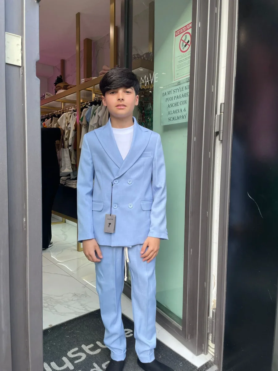 Abito all five doppio petto pantalone con elastico