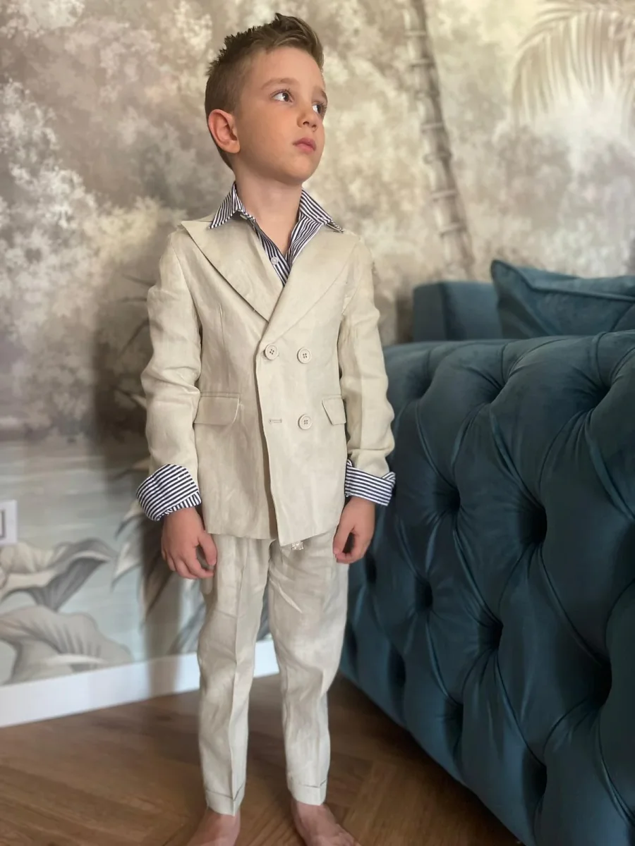 Abito giacca doppio petto e pantalone con elastico tessuto lino veste abbondante