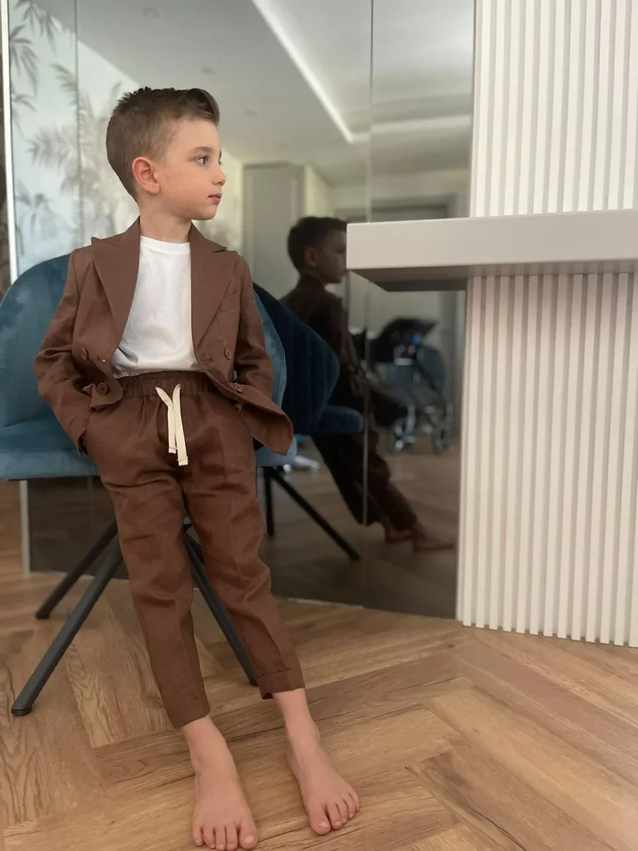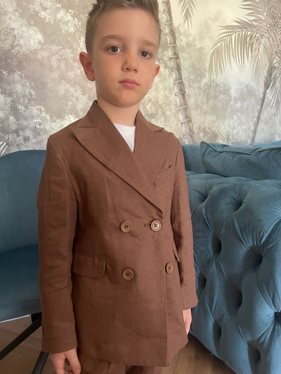 Abito giacca doppio petto e pantalone con elastico in vita tessuto lino veste abbondante