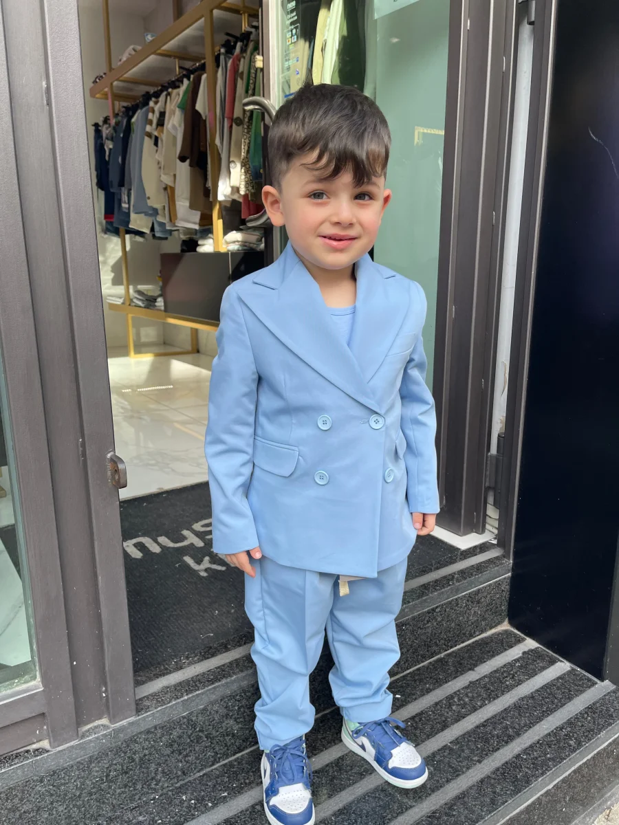 Abito doppio petto con pantalone con elastico in vita. Il prezzo comprende giacca e pantalone