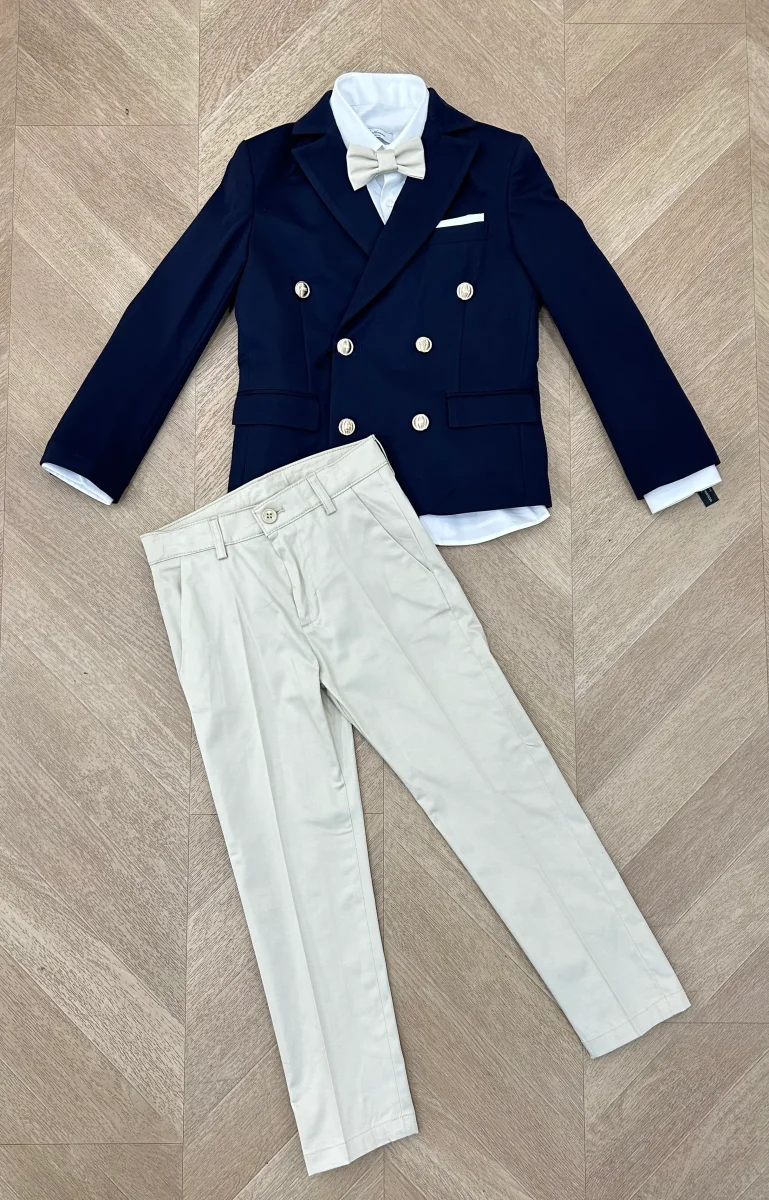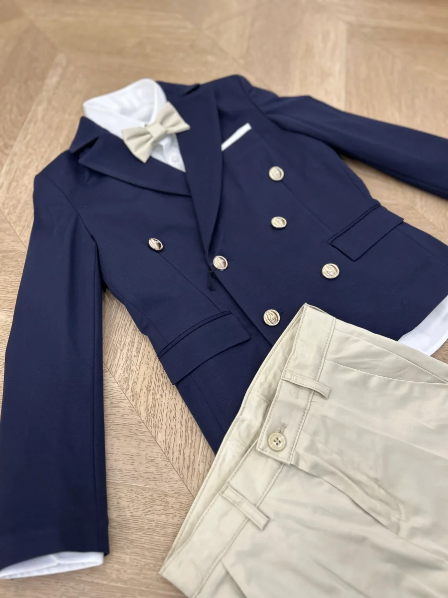 Abito blu elegante per bambino, perfetto per occasioni speciali e momenti importanti. Realizzato con attenzione ai dettagli, questo capo combina stile classico e comfort. Ideale per cerimonie, feste e eventi formali, garantisce un look raffinato e sofisticato. Un’ottima scelta per far sentire il tuo bambino elegante e sicuro di sรฉ in ogni occasione.