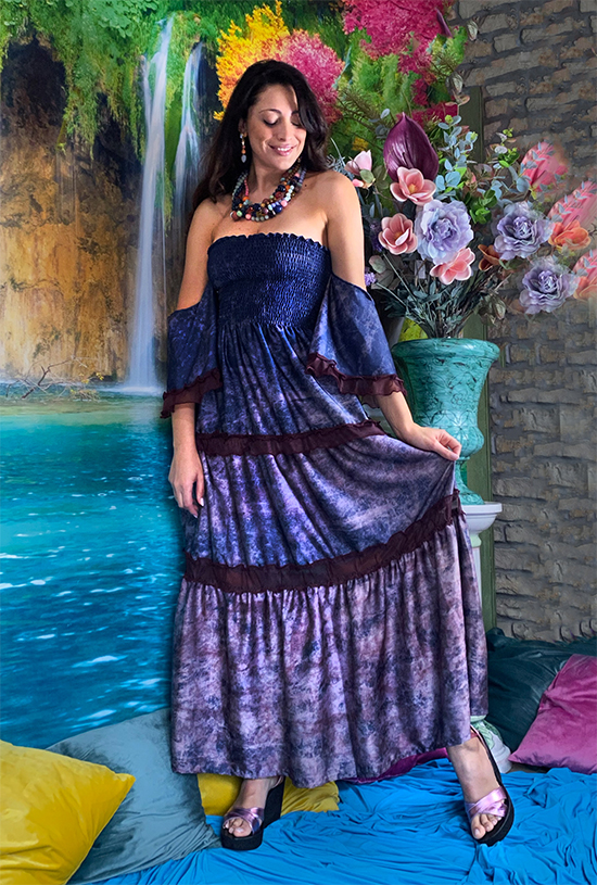 Unico e romantico, l’abito Barbara, nella variante rocks, non potrร mancare nel tuo armadio. Le balze sono arricchite da un’ elegante chiffon, stampa esclusiva Ludovica L’amante. Puรฒ essere indossato da tutte le tipologie di donna grazie all’arricciatura sul corpetto. Adatto per diverse occasioni, indossabile con o senza maniche, per avere sempre un tocco di originalitร . Disponibile in diverse fantasie e tonalitร .