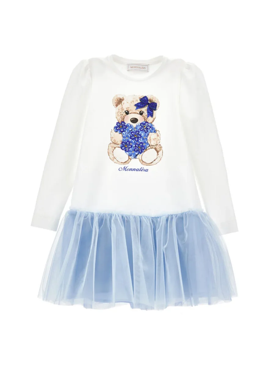 Abito cotone e tulle stampa orsetta