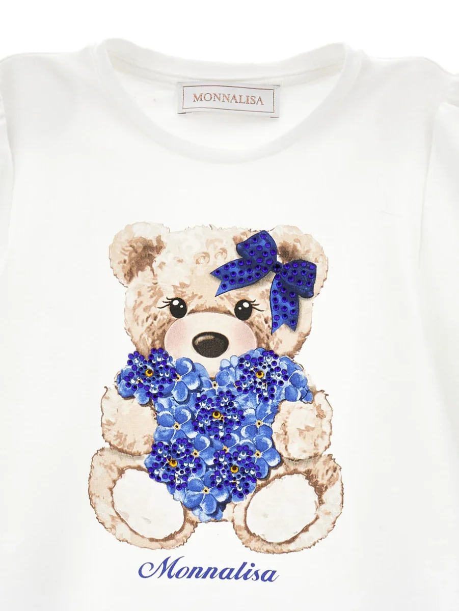 Abito in cotone stretch che unisce comfort e eleganza in un’unica creazione. La stampa gommata con simpatico orsetto cattura lo sguardo, mentre i dettagli in strass aggiungono un tocco di brillantezza. La balza in tulle arricciata sul giromanica crea movimento e femminilitร , perfetta per valorizzare la silhouette. Fodera tono su tono che garantisce praticitร e […]