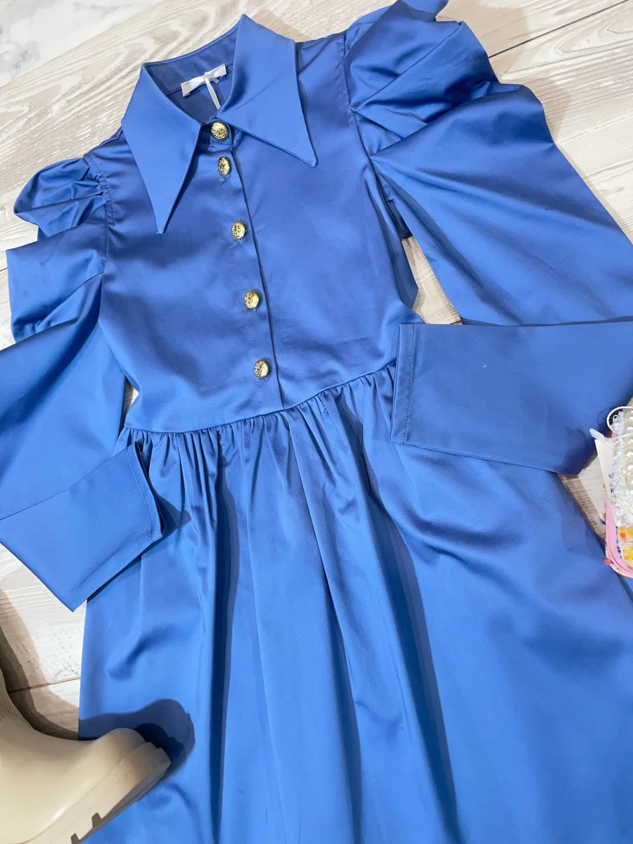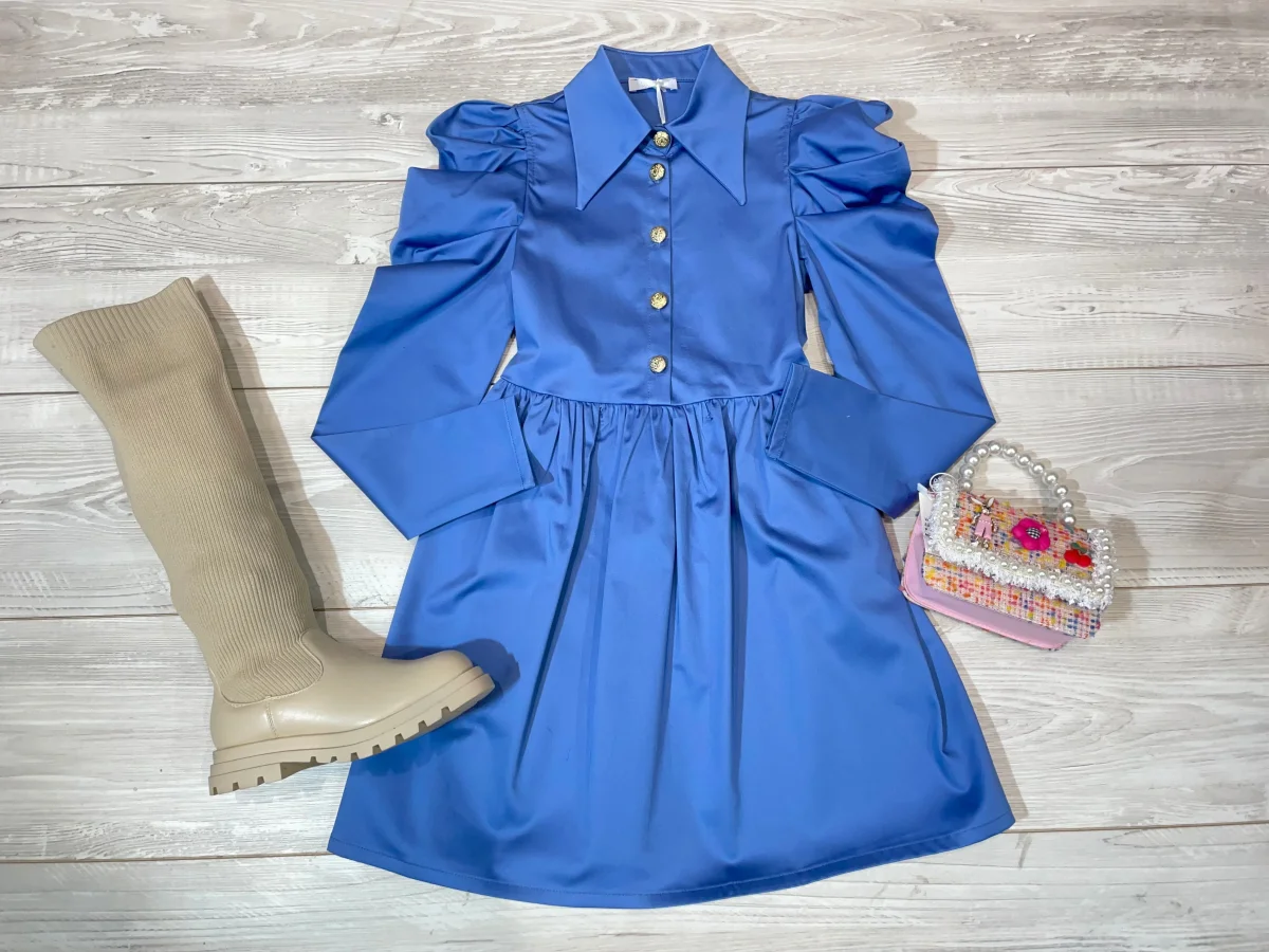 Abito Fun Fun blu con bottoni oro.composizione 98%cotone 2%elastan