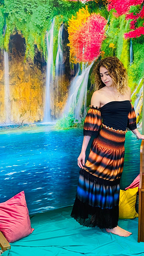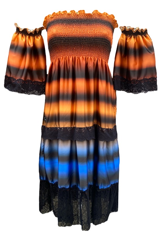 Abito/gonna Sunset: Abito a balze, elegante e raffinato, con maniche ampie removibili. Molto versatile e sbarazzino, indossalo come abito o gonna!