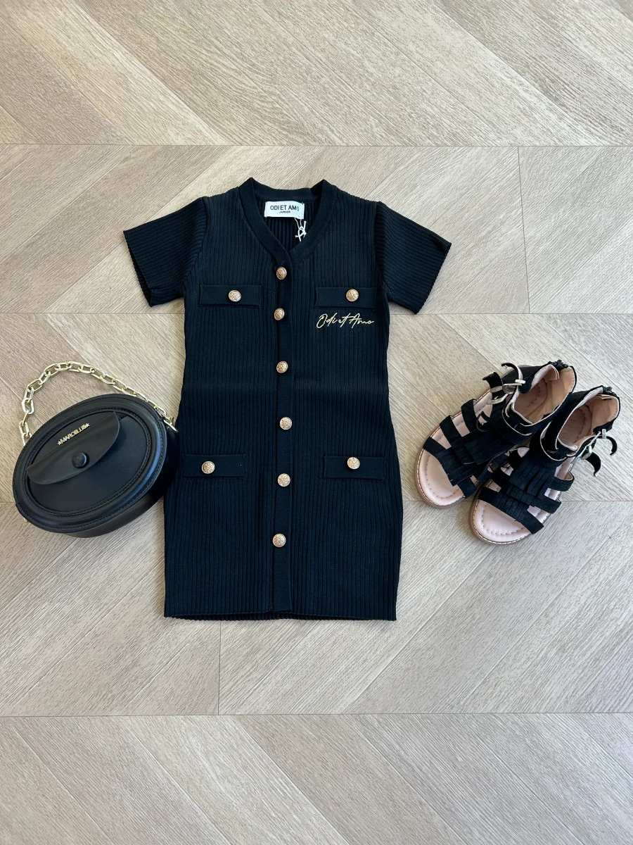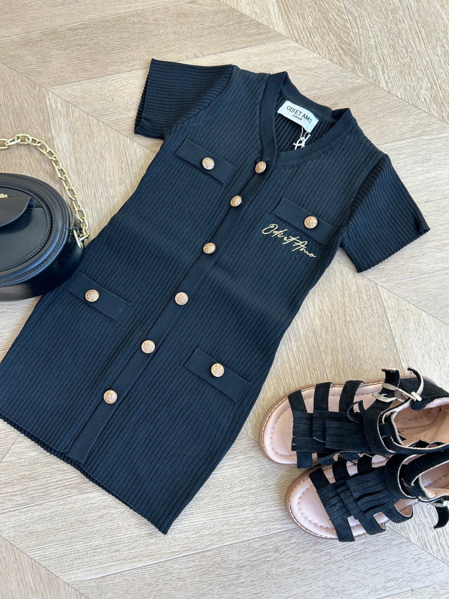 Abito in filo nero con bottoni oro