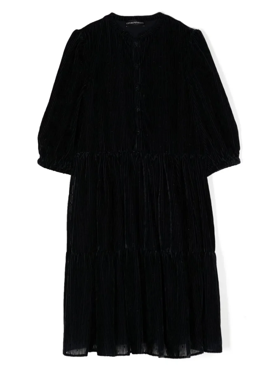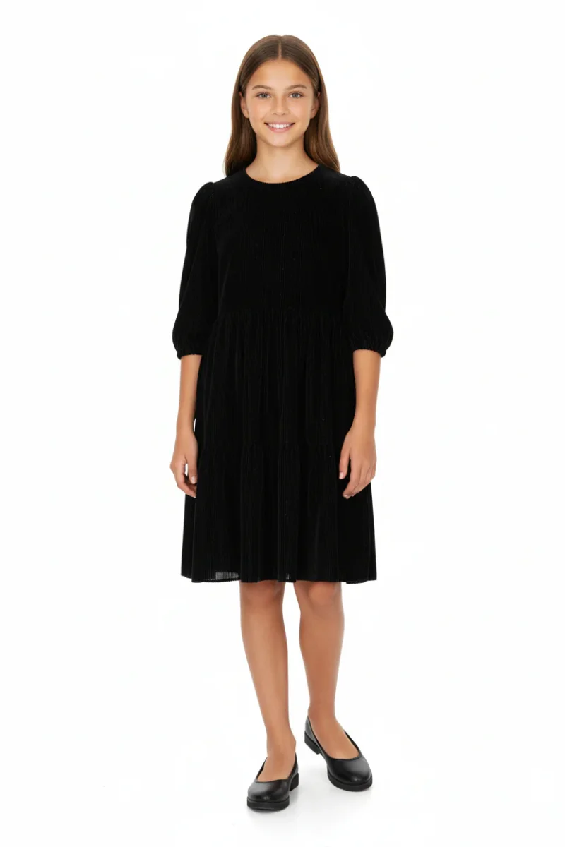 Abito chemisier in velluto a coste blu navy che unisce eleganza e comfort. Realizzato in morbido velluto a coste, presenta maniche lunghe e una pratica chiusura frontale con bottoni che permette di indossarlo in modo versatile. La silhouette svasata regala movimento e fluiditร , creando una linea lusinghiera che si adatta perfettamente a diverse occasioni. Un capo sofisticato che diventa subito un must-have della tua collezione, ideale per creare look raffinati dal giorno alla sera.