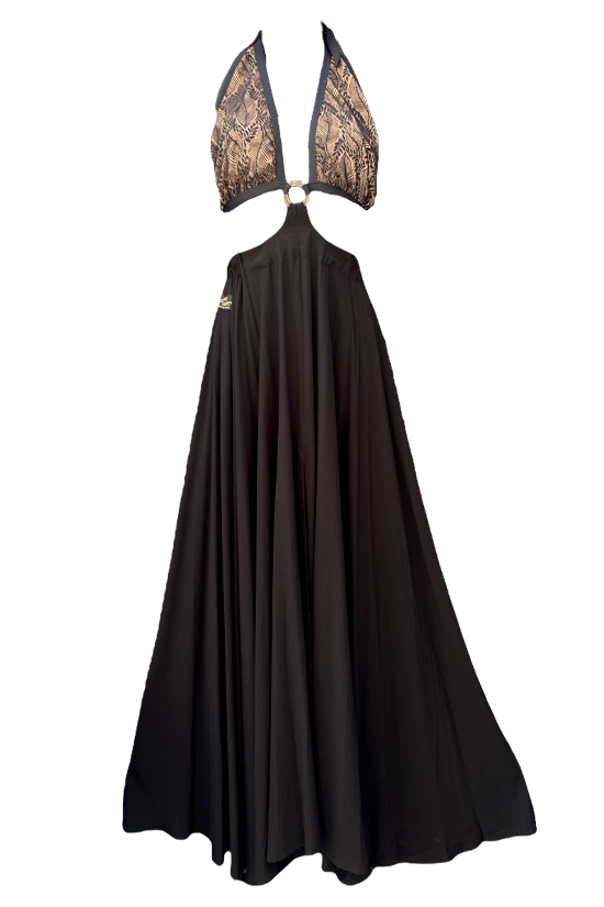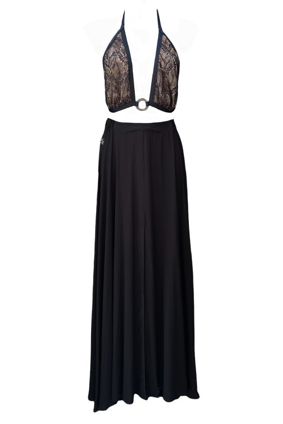 Abito Lamante foglie con grande spacco, glamour e chic. Perfetto per un’incantevole serata estiva o per farti notare ad un party! Il top puรฒ essere separato dalla gonna, cosรฌ da poterlo utilizzare come costume abbinandolo con i nostri slip best seller neri. Indossandolo ti sentirai unica e stupenda!