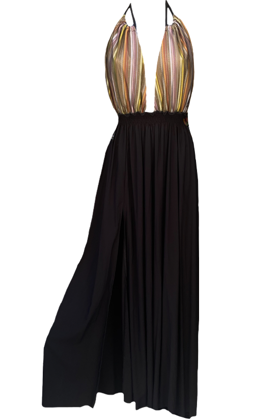 Copricostume lungo abito scollato con spacco e doppia scollatura Lamante: Perfetto per un’incantevole serata estiva o per un pool party!