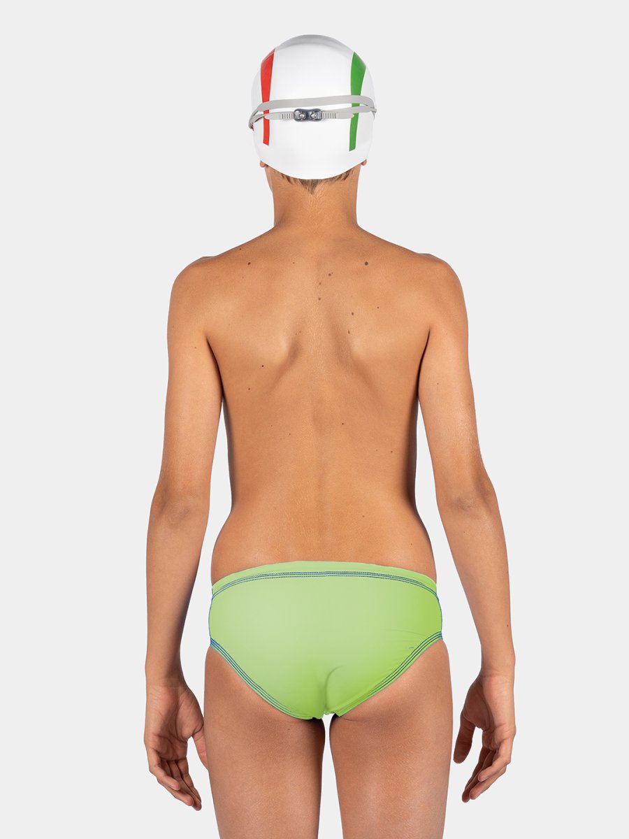 Darwin – tessuto PBT 100% poliestere e per questo inattaccabile dal cloro. Garantisce una perfetta vestibilitร nel tempo e prestazioni tecniche ineguagliabili. Protegge dai raggi UV con fattore UPF 50+, ha un’ottima traspirabilitร e asciuga rapidamente. 100% Made in Italy