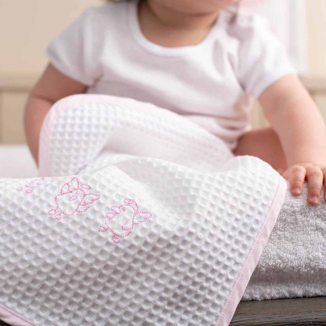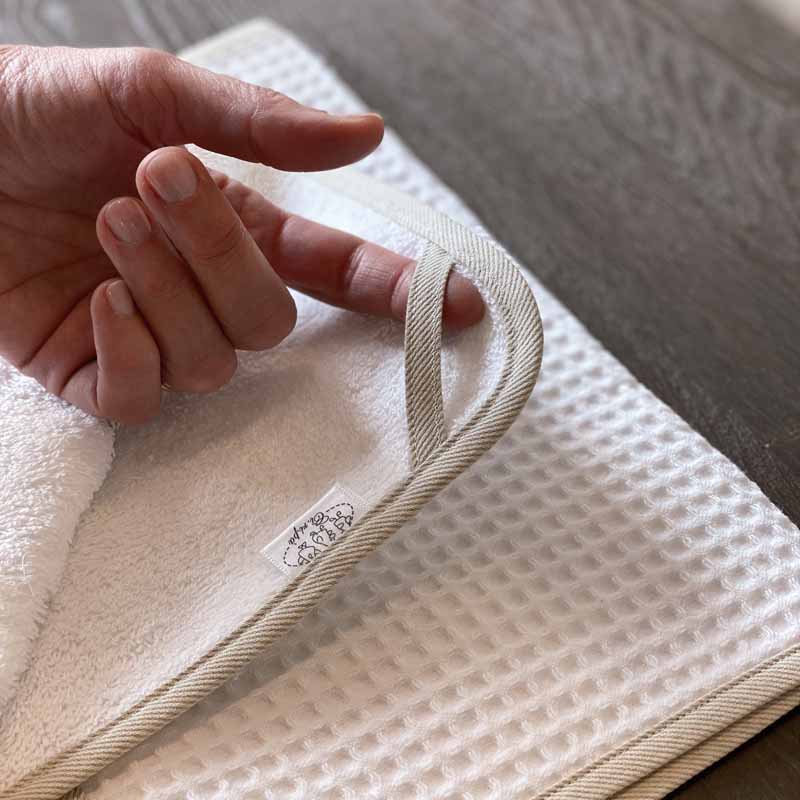 Pratico per asciugare il viso o il sederino del vostro bambino, pratico da portare nella borsa del cambio. Utile anche per l’asilo nido, è dotato di gancio per appenderlo. In morbida spugna o nido d’ape – 100% cotone. Si lava in lavatrice fino a 40 gradi.