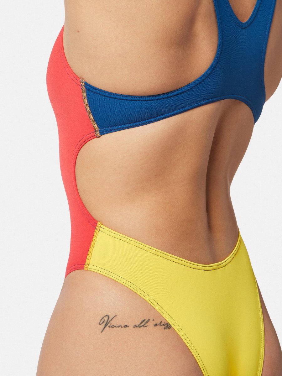 Darwin – tessuto PBT 100% poliestere e per questo inattaccabile dal cloro. Garantisce una perfetta vestibilitร nel tempo e prestazioni tecniche ineguagliabili. Protegge dai raggi UV con fattore UPF 50+, ha un’ottima traspirabilitร e asciuga rapidamente. 100% Made in Italy