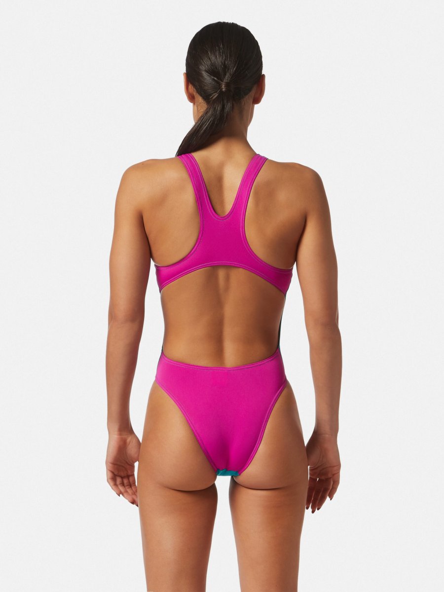 Darwin – tessuto PBT 100% poliestere e per questo inattaccabile dal cloro. Garantisce una perfetta vestibilitร nel tempo e prestazioni tecniche ineguagliabili. Protegge dai raggi UV con fattore UPF 50+, ha un’ottima traspirabilitร e asciuga rapidamente. 100% Made in Italy