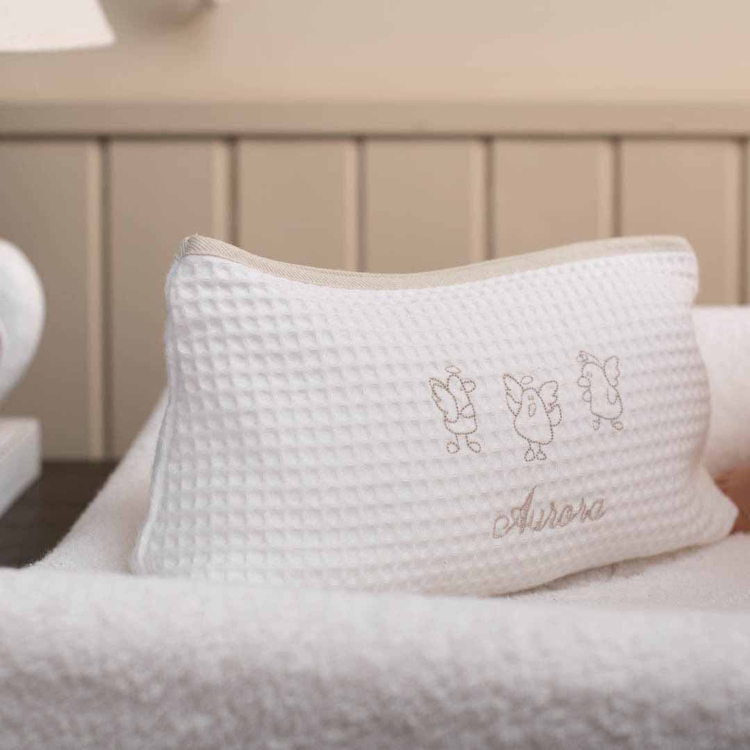 Beauty con zip in morbido nido d’ape – 100% cotone. Si lava in lavatrice ed è pratico da tenere nella borsa del passeggino con dentro salviette, pannolini e cremine. Molto piacevole e soffice. Si lava in lavatrice fino a 40°.