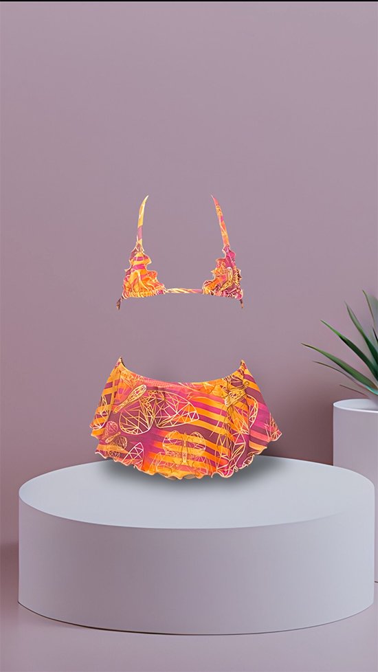 Bikini bambina triangolino con coulotte gonnellino nella variante butterfly, รจ il costume da bagno in coordinato per la tua bambina!