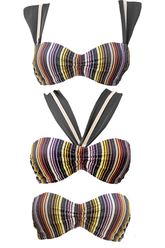 Crea il bikini dei tuoi sogni iniziando da questo elegante top bikini coppa con bretelle regolabili e trasformabili. La nostra esclusiva lavorazione a mano ci permette di realizzare la coppa perfetta che valorizza il tuo decoltรจ qualsiasi taglia sia: infatti per i seni piรน piccoli all’interno ci sarร una coppetta push-up che li aumenterร di una taglia e per quelli piรน grandi la coppa all’interno sarร rigida e con struttura adeguata a sostenere un peso maggiore. Scegli infine lo slip piรน adatto a te e alle tue esigenze: lo slip Jonah, sexy e sbarazzino per non passare inosservata, la Coulotte Marilรน, per chi ama lo slip a vita alta sempre di tendenza, con la particolaritร della coulisse sui fianchi, cosรฌ da poter regolare l’altezza. Scegliendo un bikini della linea Sunrise, sarai sicuramente super glamour!