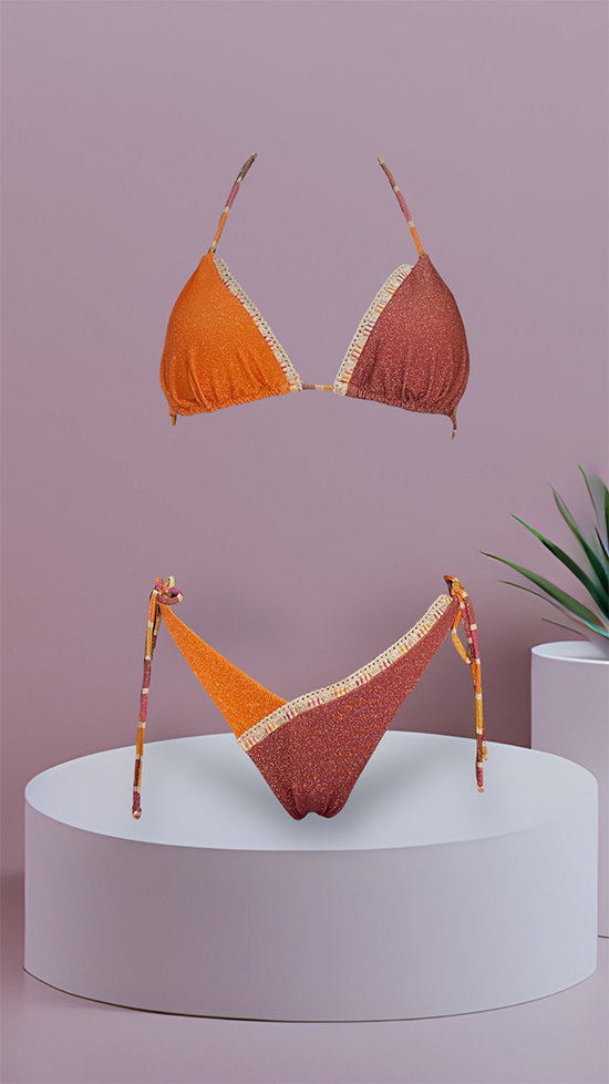 Scintillante ed unico, il triangolo basic della linea bicolor, con coppe estraibili, adatto per i seni piccoli e medio-grandi รจ ideale per far risaltare il tuo dรฉcolletรฉ, arricchito da una passamaneria che decora il seno, sarร il bikini dei tuoi sogni. Scegli infine lo slip piรน adatto a te e alle tue esigenze:ย la brasiliana aria bicolor, sgambatura sempre di tendenza, con laccetti regolabili sui fianchi, per non passare inosservata; la Coulotte bicolor, per chi ama lo slip a vita alta sempre di tendenza, con particolaritร della passamaneria sul davanti. CONTATTACI NELLA FINESTRA WHATSAPP PER AVERE UNA CONSULENZA E CREARE IL MIX GIUSTO PER TE!