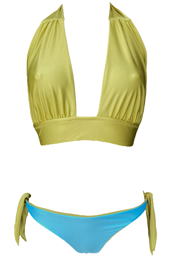 Crea il bikini dei tuoi sogni iniziando da questo fantastico top bikini triangolo, che valorizzerร ย e sosterrร perfettamente il tuo decoltรจ. Ideato per sorreggere i seni piรน grandi, ma si adatta perfettamente ai seni medi e piccoli. Scegli infine lo slip piรน adatto a te e alle tue esigenze: lo slip dal taglio classico, con i fiocchi sui lati, adatto a chi ama semplicitร e comoditร ; lo slip brasiliano Aria, sgambatura sempre di tendenza, con laccetti regolabili sui fianchi, per non passare inosservata; lo slip Xena, particolare e di gran moda, per essere audace anche in spiaggia; la Coulotte con dettaglio di tubolari sul davanti, per chi ama lo slip a vita alta, sempre di gran tendenza. Una linea che nasce dallโidea di poter soddisfare a 360ยฐi gusti di tutte le donne. Scegliendo un bikini della linea Bicolor, sceglierai un bikini elegante e allo stesso tempo grintoso che non passerร mai di moda.