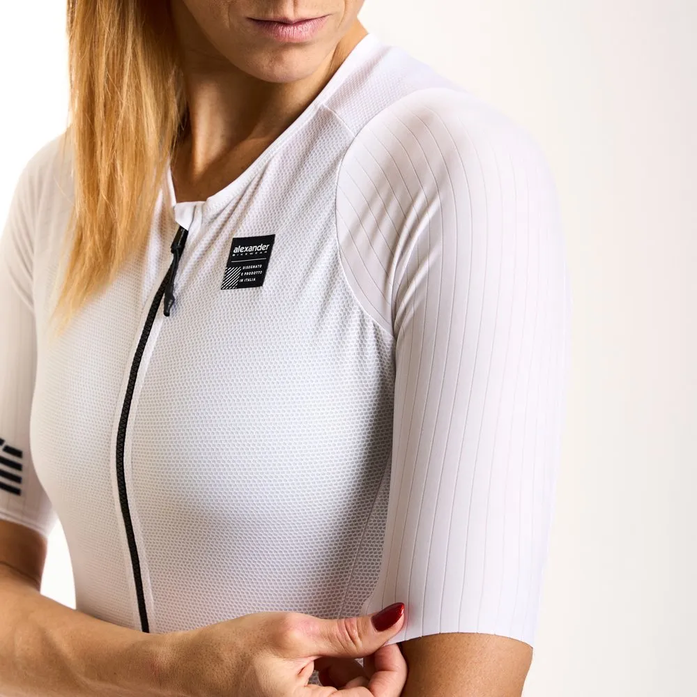 Il nostro body da strada รจ stato creato per garantire la massima performance in gara, realizzato in lycra elasticizzata con inserti in materiale semiretato nella zona sottobraccio e parte alta della schiena per una maggiore traspirabilitร .