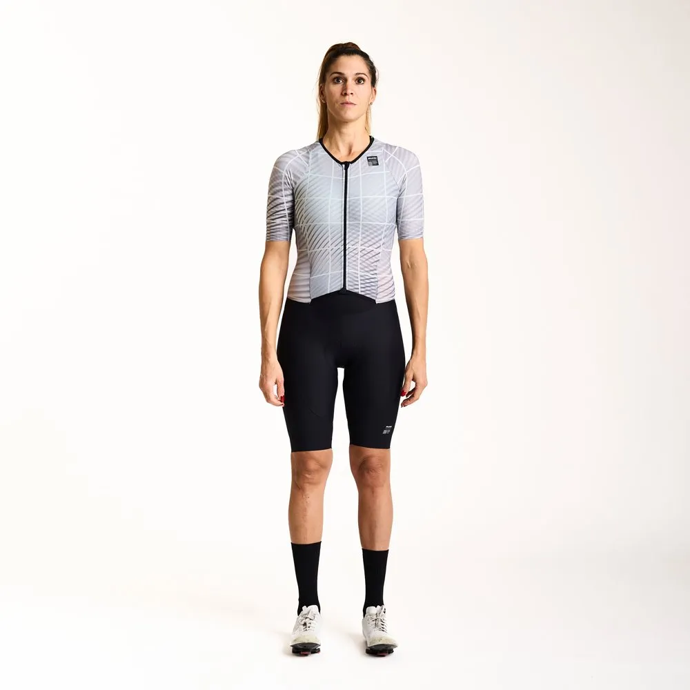 Il nostro body da strada รจ stato creato per garantire la massima performance in gara, realizzato in lycra elasticizzata con inserti in materiale semiretato nella zona sottobraccio e parte alta della schiena per una maggiore traspirabilitร .La parte anteriore , conpletamente apribile ,รจ realizzata in tessuto tecnico altamente traspirante e leggero che dona una sensazione di comfort come una seconda pelle, con maniche a taglio vivo avvolgenti e morbide. Parte bassa con fine gamba a taglio vivo per una vestibilitร e aderenza ottimale. Tre tasche posteriori in materiale elasticizzato e forato.