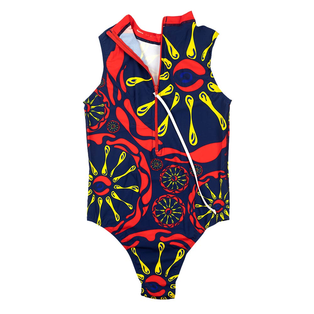 Bodysuit in lycra smanicato, interamente sublimato, con zip posteriore e cordoncino per una facile apertura. Adatto per gli sport d’acqua, asciugatura rapida. Vestibilitá Fit Se sei indeciso, scegli la taglia piú grande