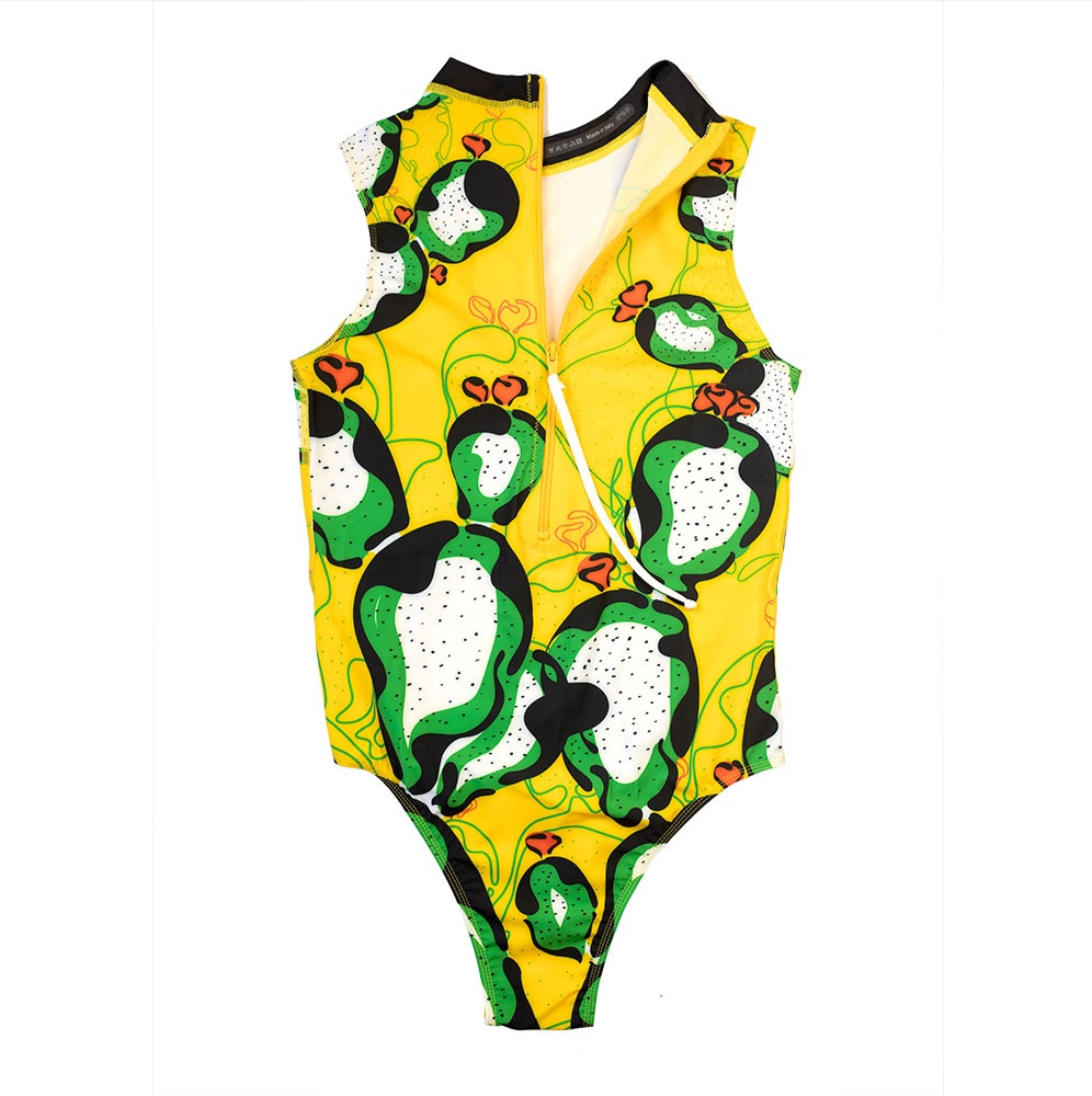 Bodysuit in lycra smanicato, interamente sublimato, con zip posteriore e cordoncino per una facile apertura. Adatto per gli sport d’acqua, asciugatura rapida. Vestibilitá Regolare.