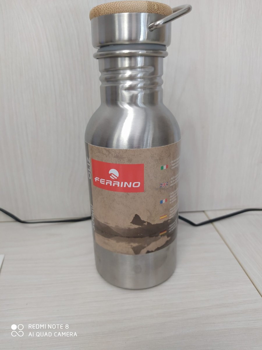 Borraccia in acciaio inossidabile 18/10, tappo a vite per chiusura ermetica in acciaio inossidabile con rivestimento esterno in bamboo.