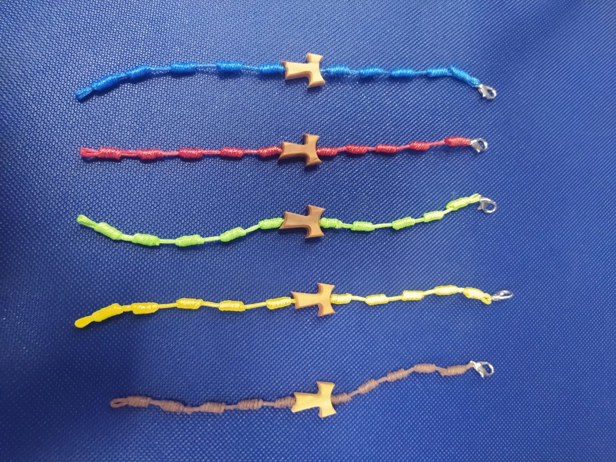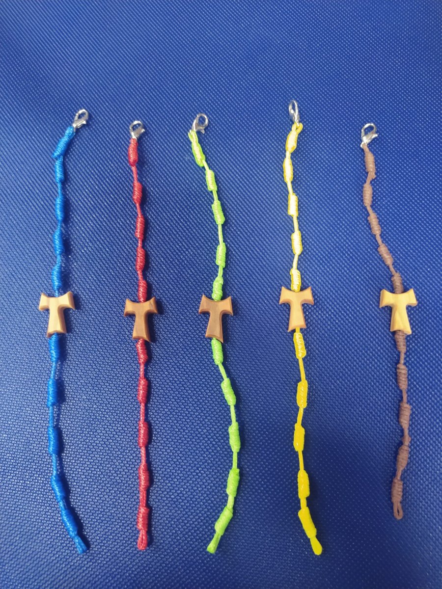Braccialeย colorato con tau in legno chiusura con gancio.