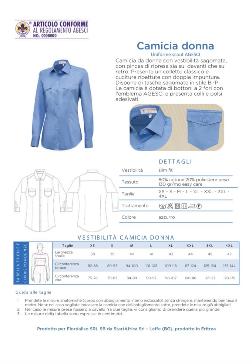 La camicia da donna dellโ€™uniforme scout ufficiale dellโ€™Associazione Guide e Scouts Cattolici Italiani.