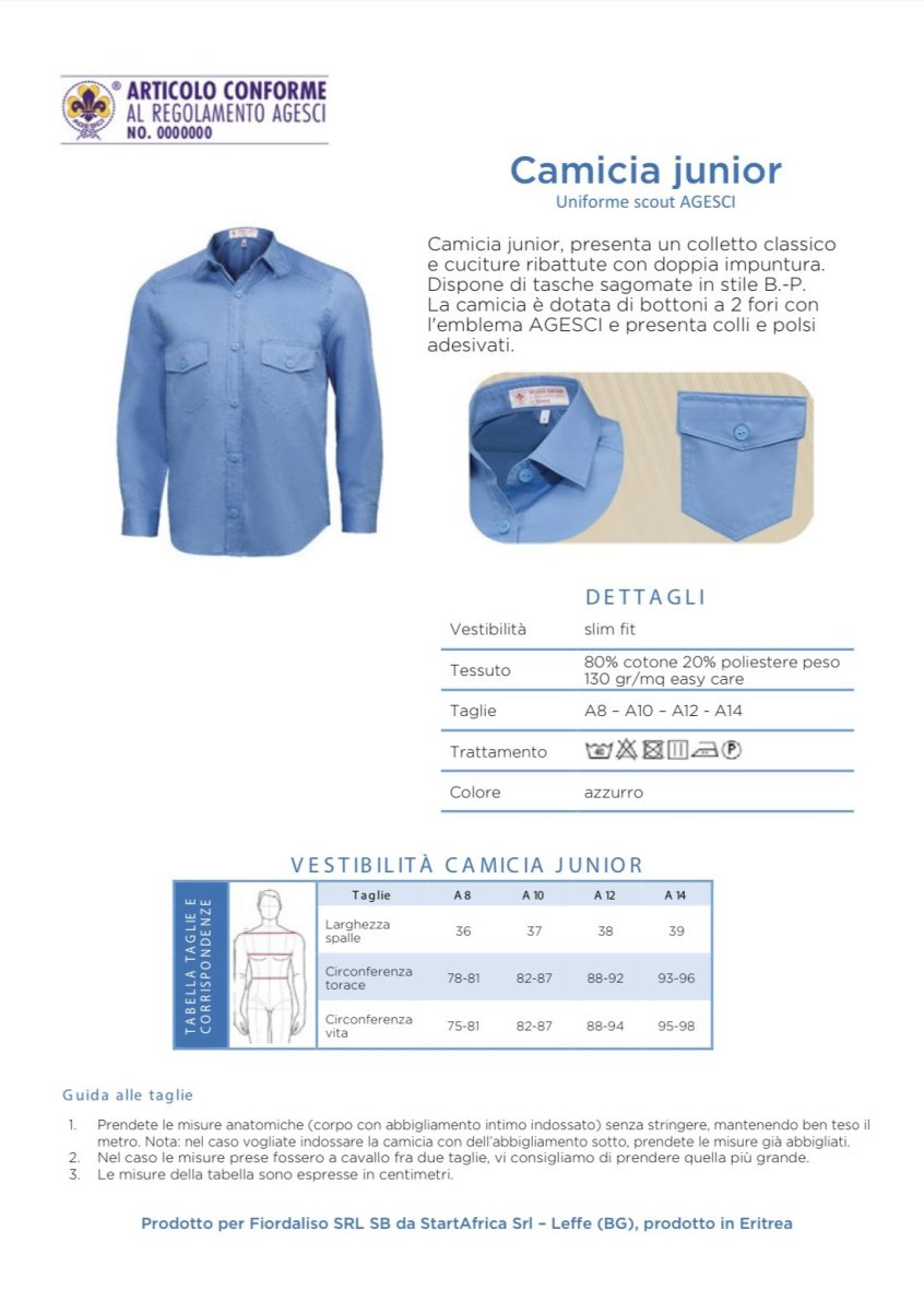 Camicia Junior Uniforme Scout Agesci