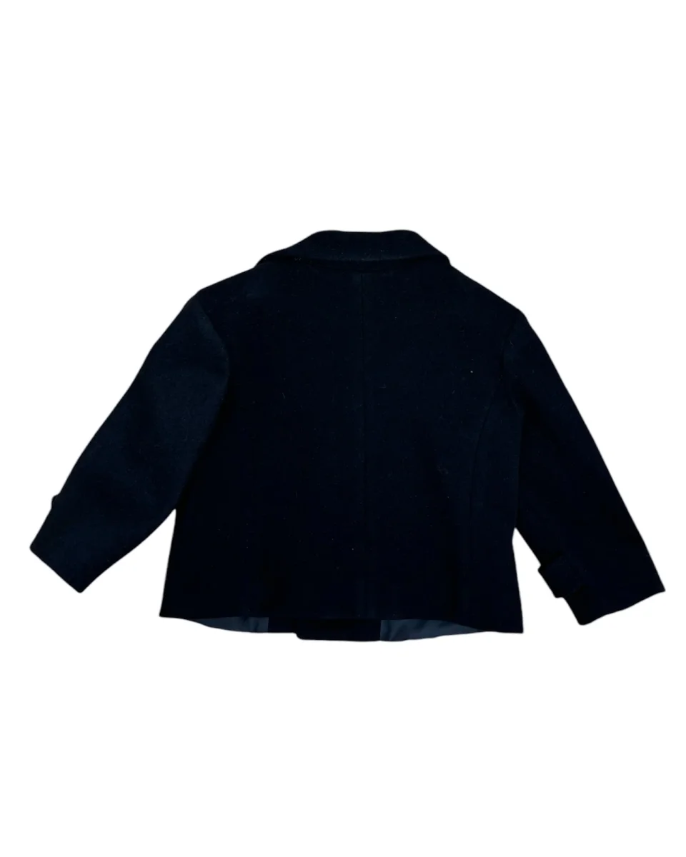 Un cappotto elegante per il tuo piccolo! Realizzato in morbido tessuto con tasche laterali, bottoni centrali e sulle maniche lo rendono unico e particolare, questo cappotto รจ perfetto per ogni occasione. Sarร il tocco di stile che mancava al guardaroba del tuo bambino!