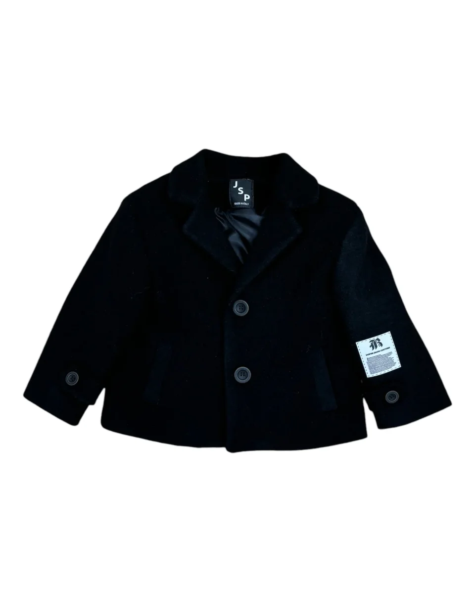 Un cappotto elegante per il tuo piccolo! Realizzato in morbido tessuto con tasche laterali, bottoni centrali e sulle maniche lo rendono unico e particolare, questo cappotto รจ perfetto per ogni occasione. Sarร il tocco di stile che mancava al guardaroba del tuo bambino! 100% Poly Made in Italy