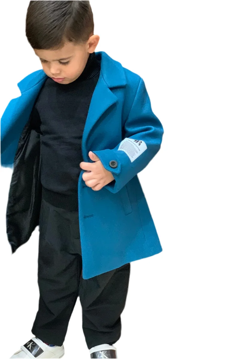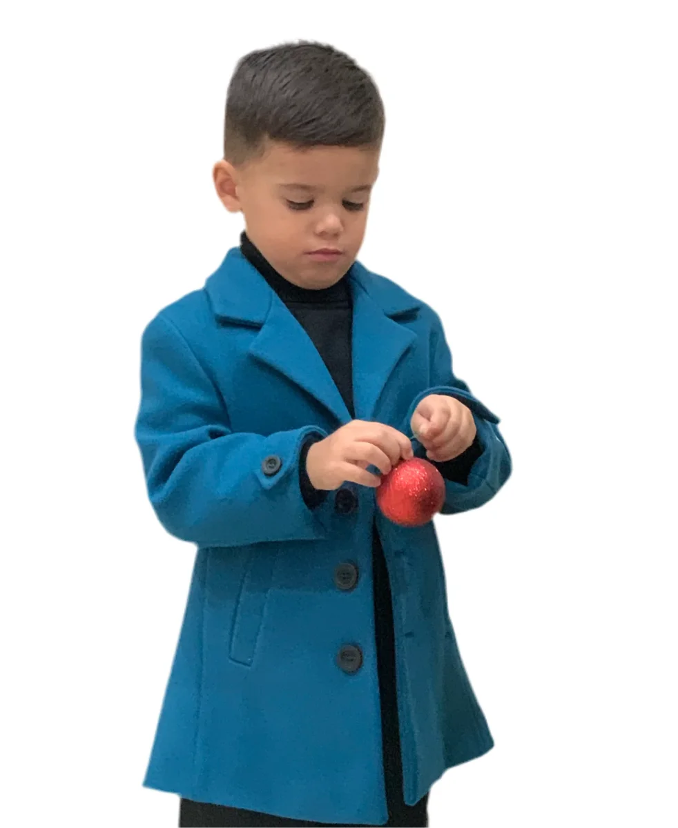 Un cappotto elegante per il tuo piccolo! Realizzato in morbido tessuto con tasche laterali, bottoni centrali e sulle maniche lo rendono unico e particolare, questo cappotto รจ perfetto per ogni occasione. Sarร il tocco di stile che mancava al guardaroba del tuo bambino!