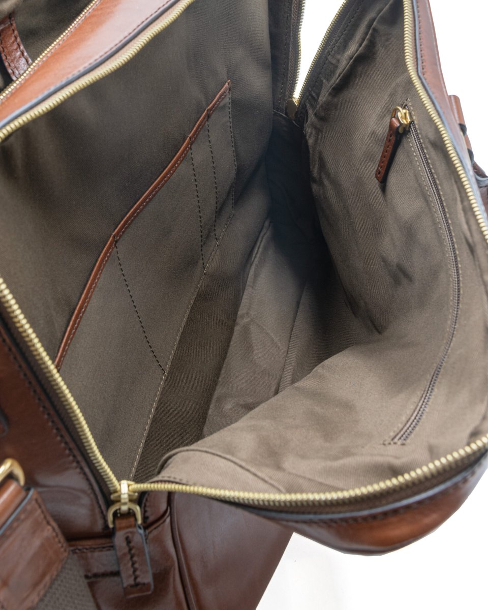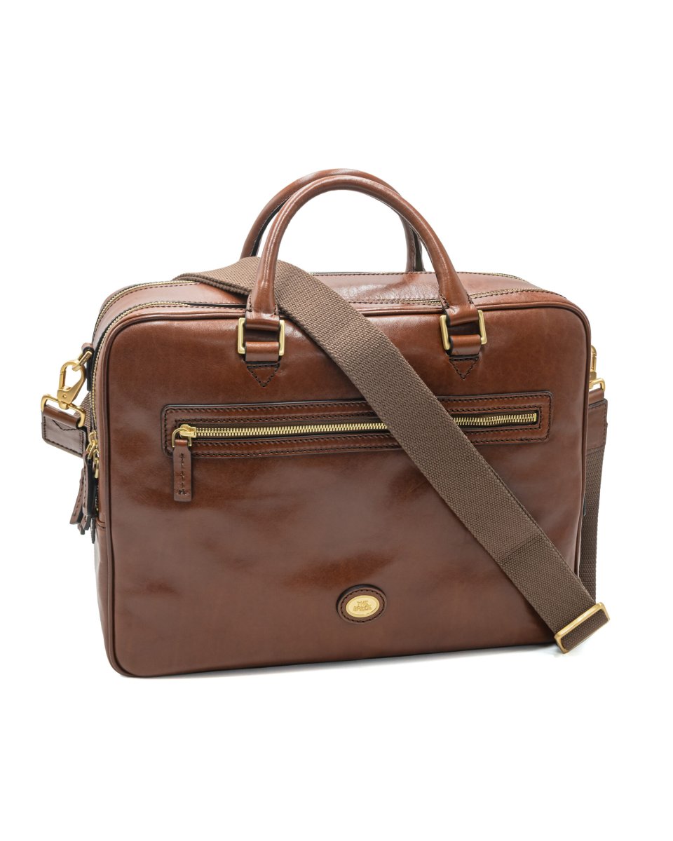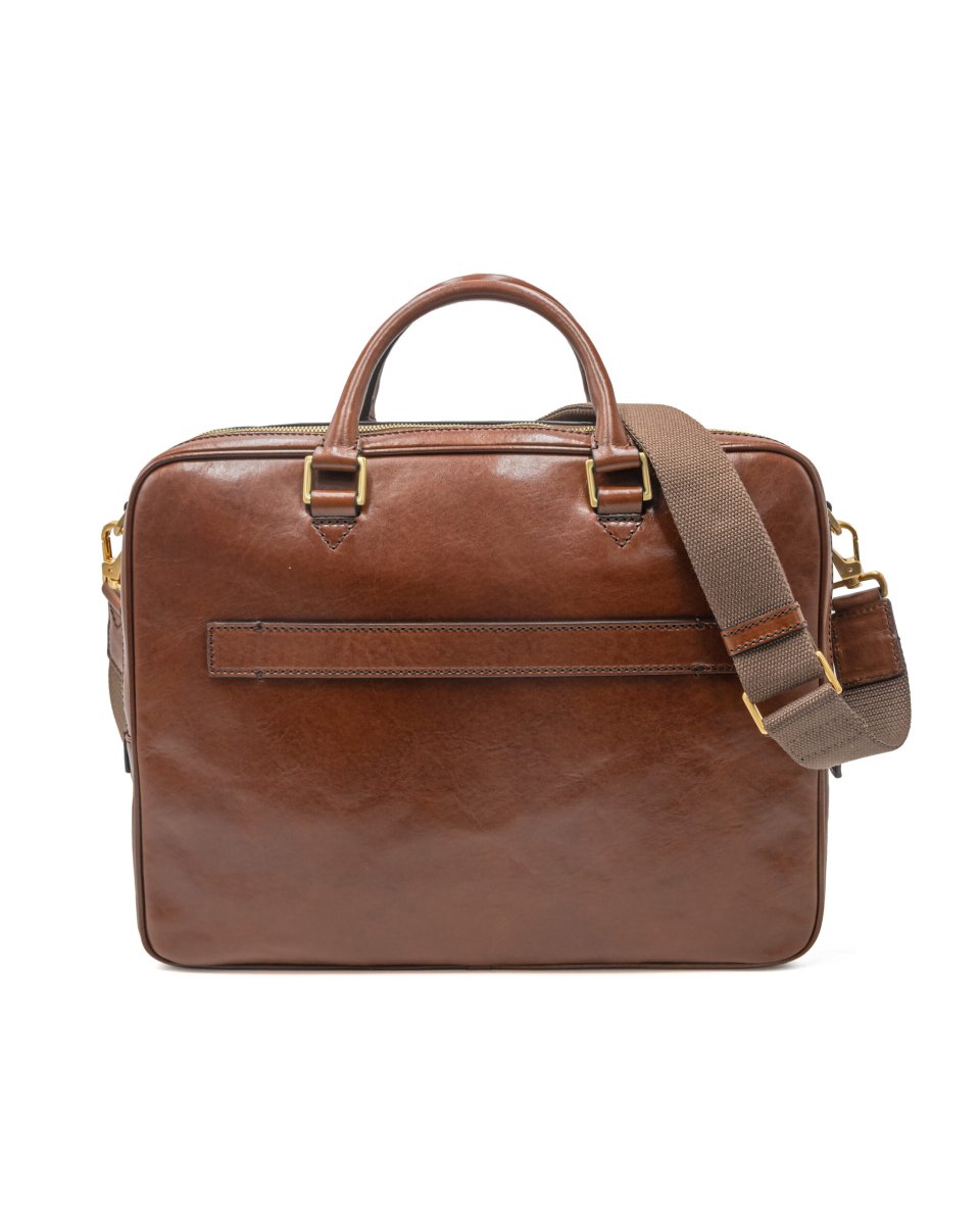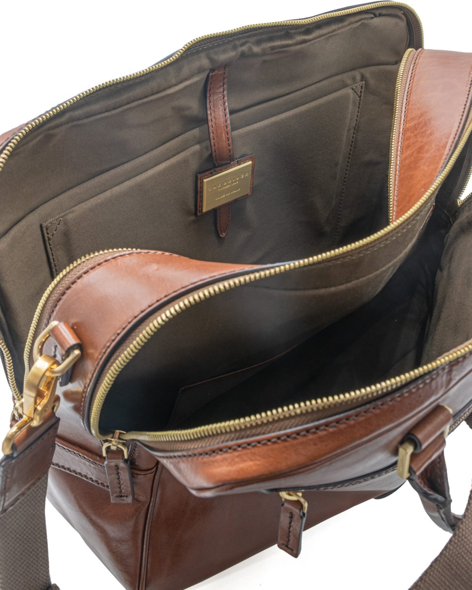 Cartella moderna di The Bridge con interni pratici. La pelle pregiata e le finiture di alta qualità fanno di questa borsa un’ottima compagna. In uno degli scomparti principali è possibile riporre un computer portatile fino a 35 cm di larghezza. Tasca interna, Tasca esterna, Spazio per piccolo raccoglitore, Passante per manico, Tracolla removibile. Dimensioni: 32 x 41 x 13 cm