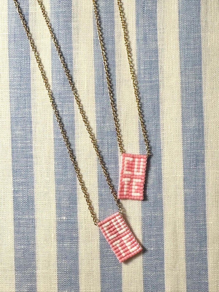 Collana fatta a mano a telaio, misura regolabile circa 50cm. Catenina in argento dorato. Ricamo in perline di vetro misura 1cm per 2cm