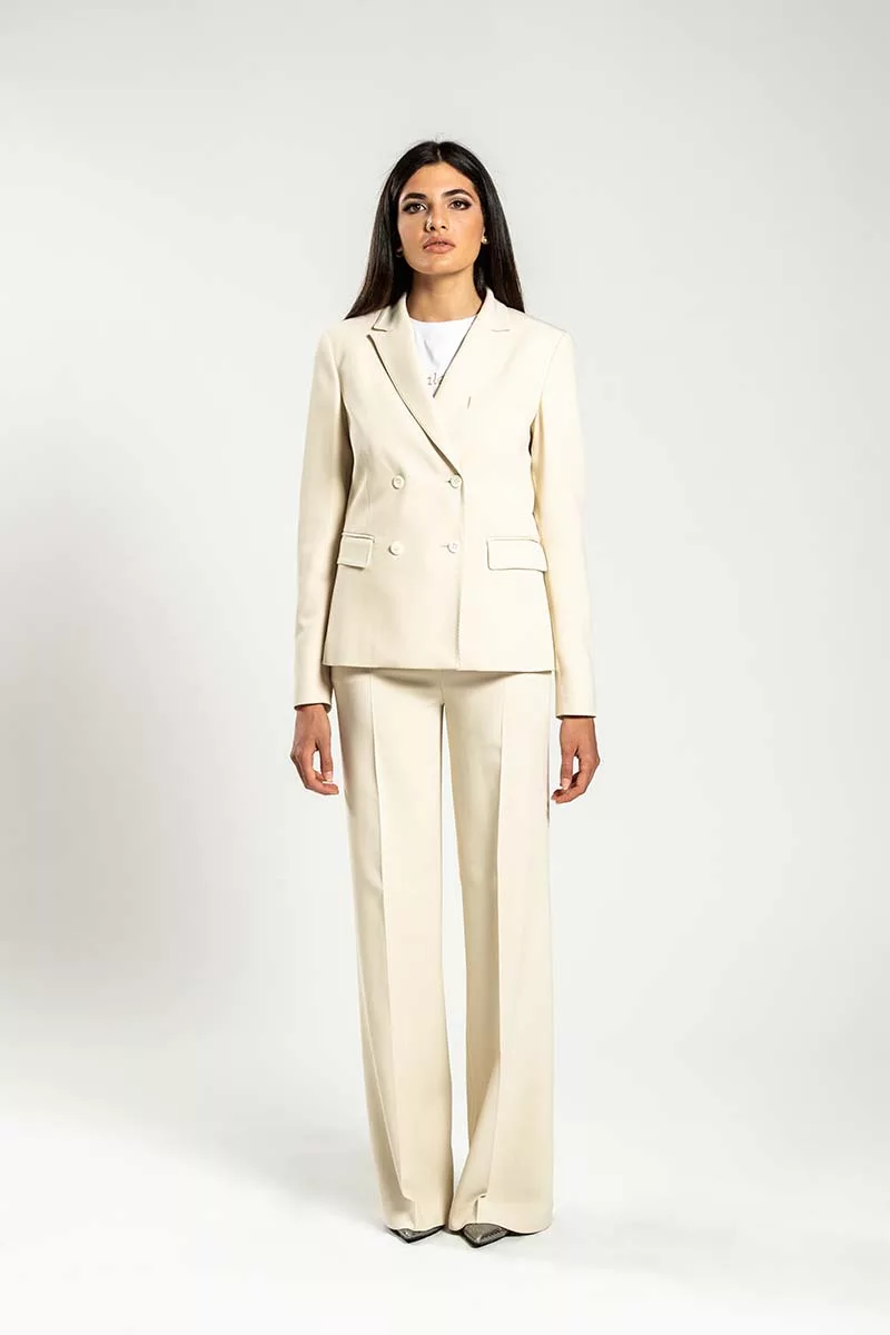 Completo donna in crepe di lana panna