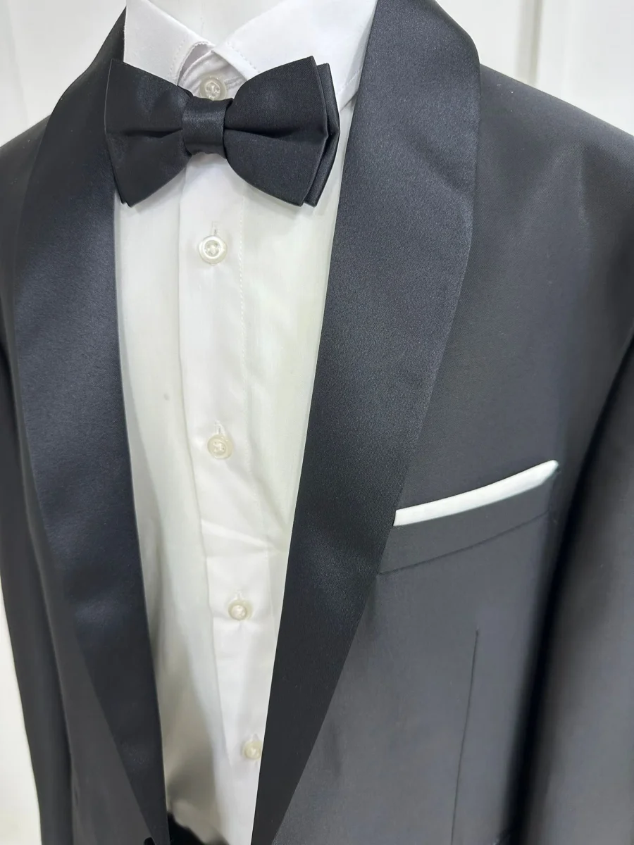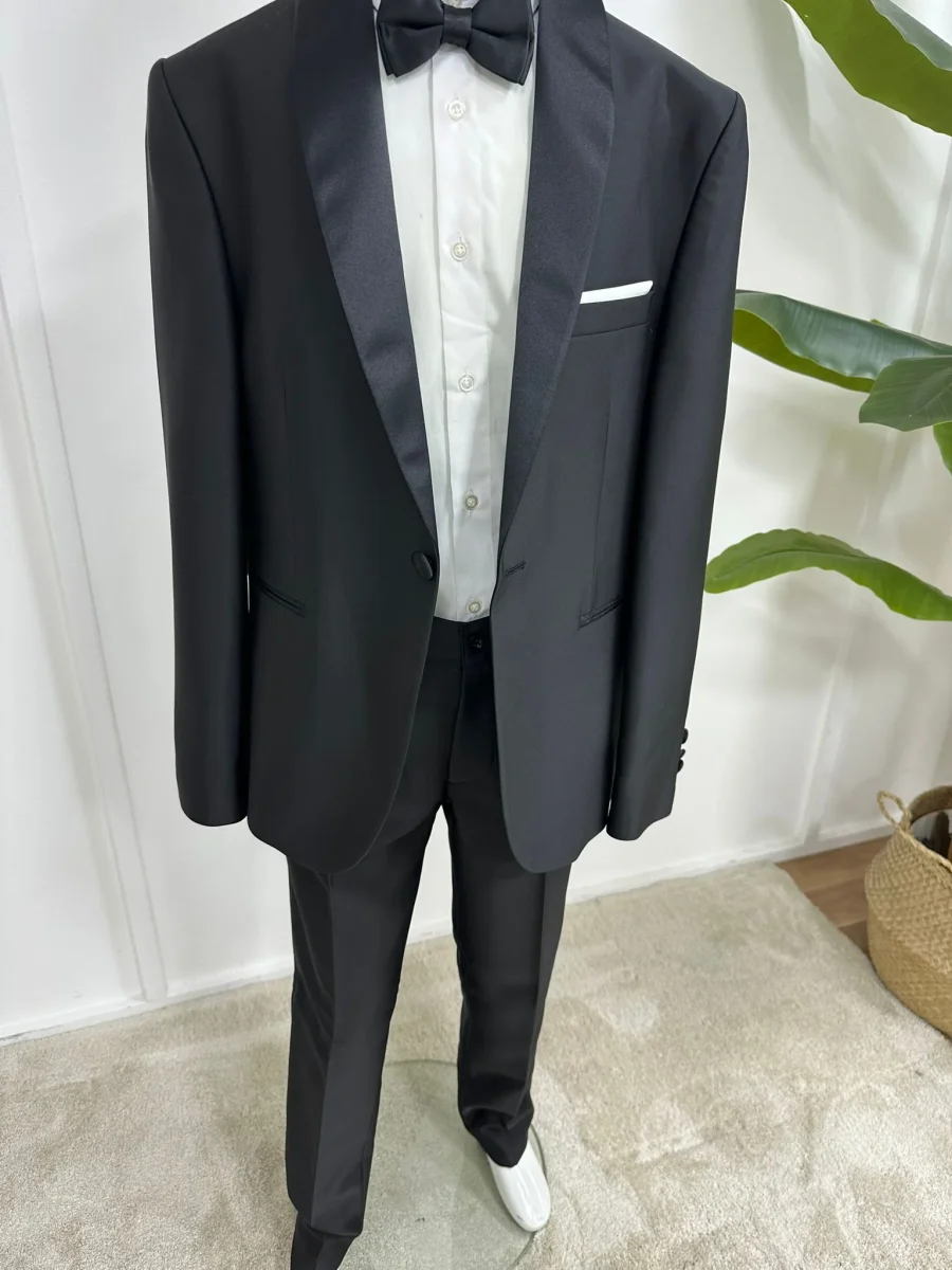 Completo elegante nero perfetto per le occasioni speciali. Lo smoking presenta una camicia in cotone morbido e traspirante, abbinata a un pantalone con cintura a molla regolabile per massimo comfort durante la giornata. Il papillon coordinato completa l’outfit con stile raffinato. Ideale per cerimonie, matrimoni e eventi formali, questo set garantisce un’eleganza senza compromessi. Un capo versatile che valorizza ogni momento importante con una silhouette impeccabile e una qualitร costruttiva affidabile.
