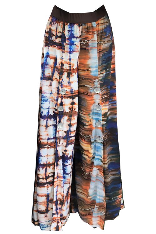 Un pantalone leggero e fresco, ti sembrerร di indossare una gonna lunga. Scegli se indossarlo con gli spacchi aperti o chiusi. Perfetto indossato per andare in spiaggia con il costume in coordinato o per un apericena con una blusa o un top. Impossibile passare inosservate, racchiude in sรฉ grinta e sensualitร .