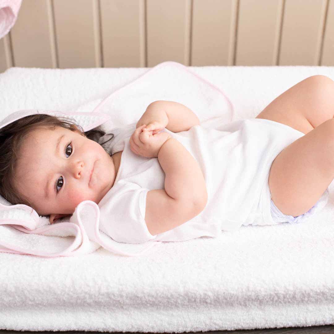 Pratico coprifasciatoio con angoli in morbida spugna – 100% cotone. Riveste il vostro fasciatoio senza muoversi. Igienico e morbido è molto assorbente e piacevole a contatto della pelle del vostro bambino. Si lava in lavatrice fino a 40°. Vi accompagna per tutto il periodo legato all’utilizzo del pannolino.