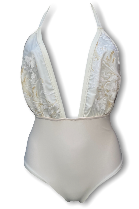 Costume intero Lamante Bridal: L’intramontabile costume intero firmato Ludovica L’Amante, con profonda scollatura che ti renderร unica