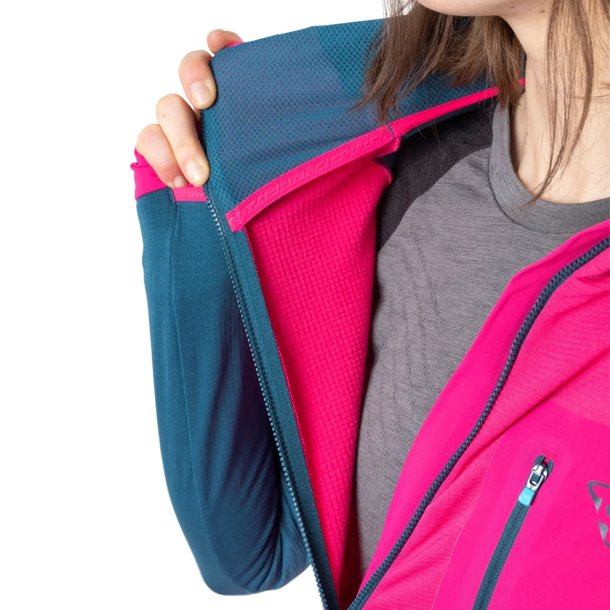 Grazie alla gradevole morbidezza della struttura waffel all’interno, la giacca non ha solo proprietà isolanti eccellenti, ma è anche leggera e comprimibile, e la multi-estensibilità del materiale garantisce comfort e libertà di movimento, mentre le pratiche aperture per il pollice tengono le maniche ferme al loro posto.