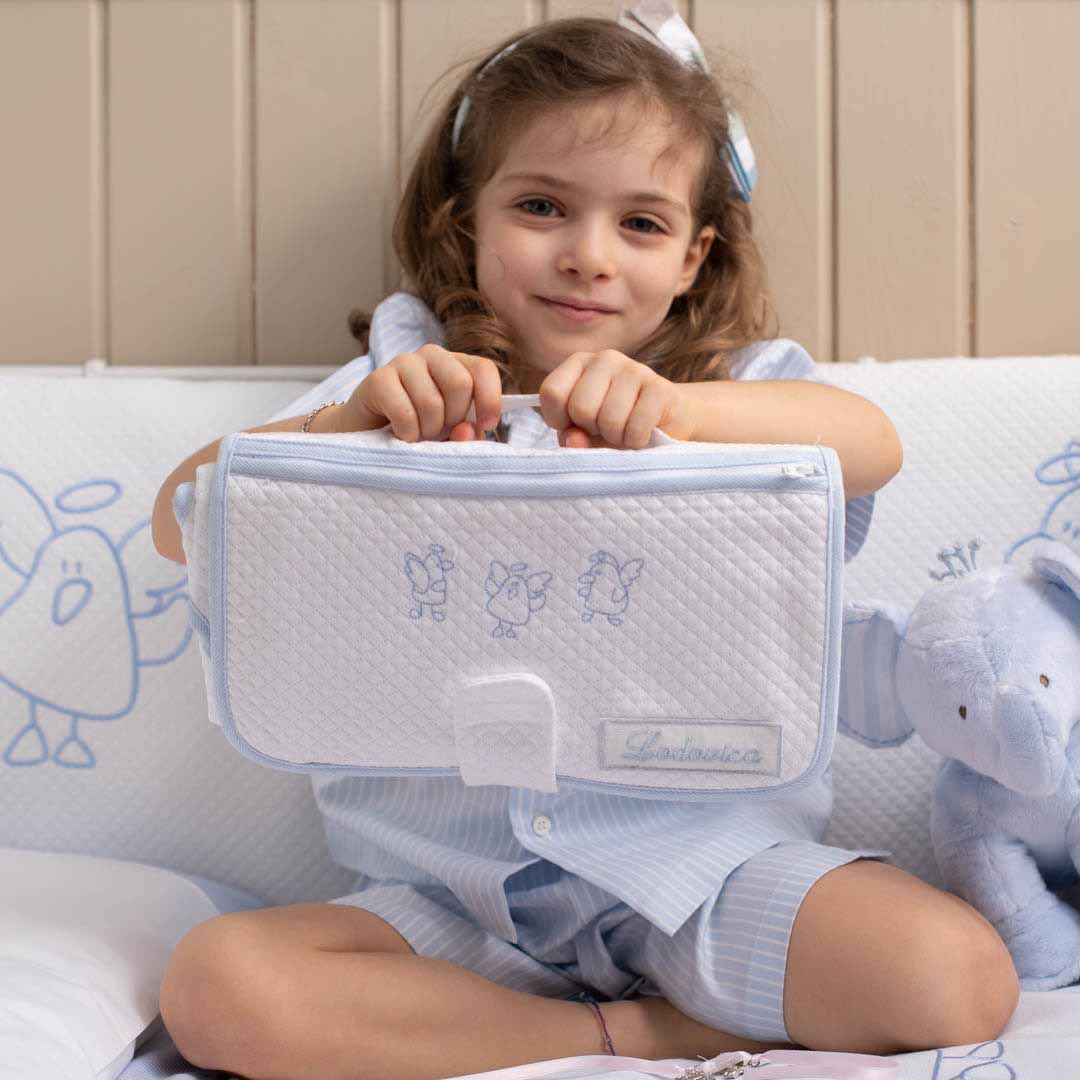 Fasciatoio da viaggio pieghevole. Disponibile in taglia Unica con ricamati i ciripà con le ali. Tempi di produzione: 10 giorni