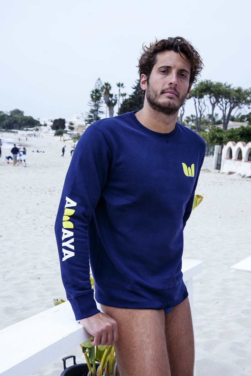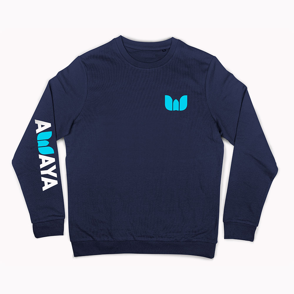 La Felpa girocollo Awaya, dallo stile casual e moderno, cotone di alta qualitá, e morbidissima al tatto,interno felpato. Stampa logo awaya sul braccio destro e sul petto. Disponibile nel colore Blu Navy, Nordic Blue Il colore del logo W potrá variare giallo, azzurro