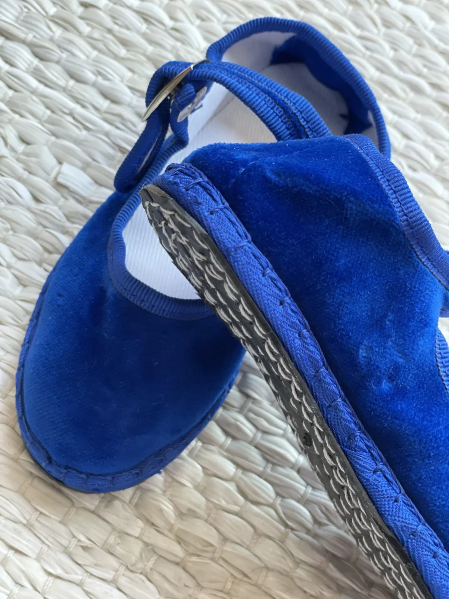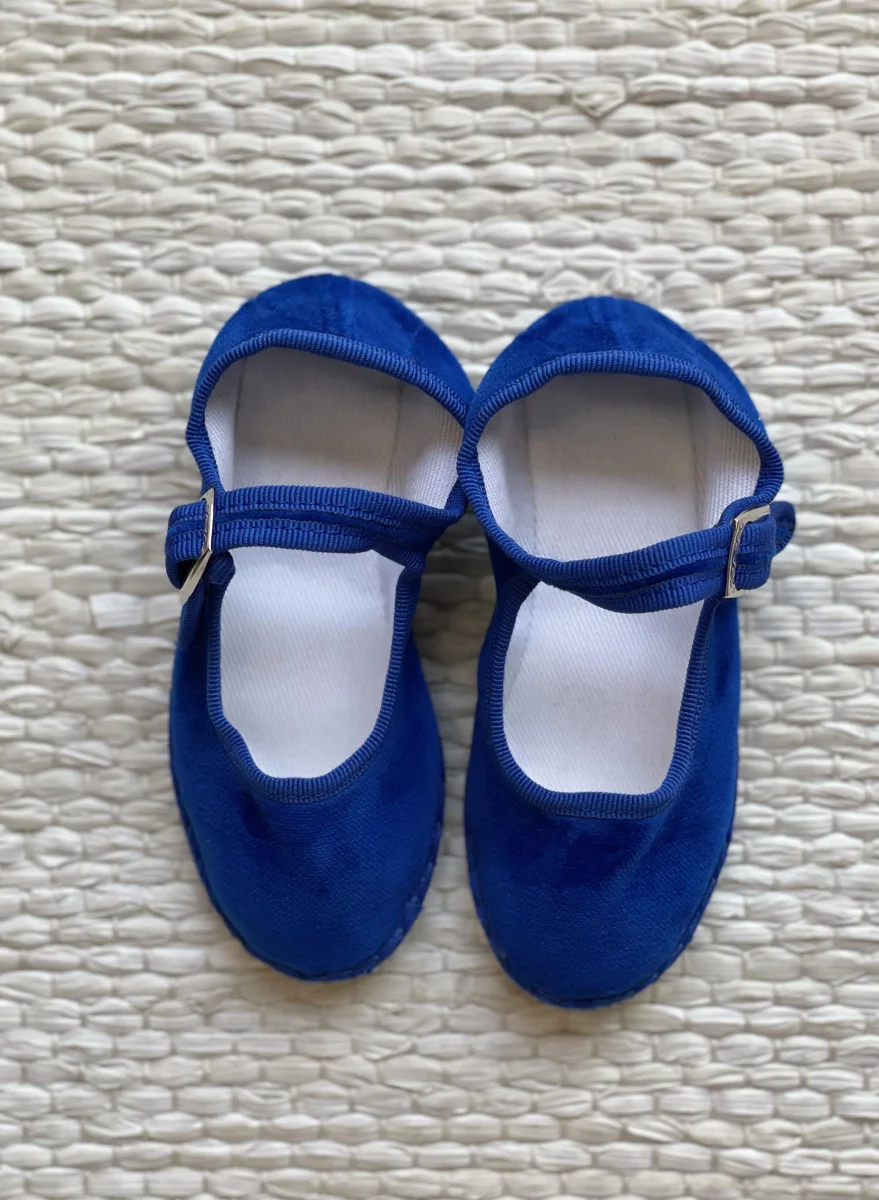 Friulane classiche con punta stondata, esterno in velluto di cotone e rivestimento interno in cotone bianco. Suola in gomma. Calzata ridotta.