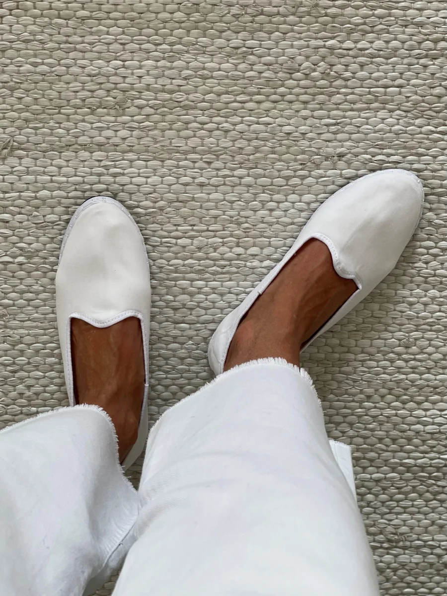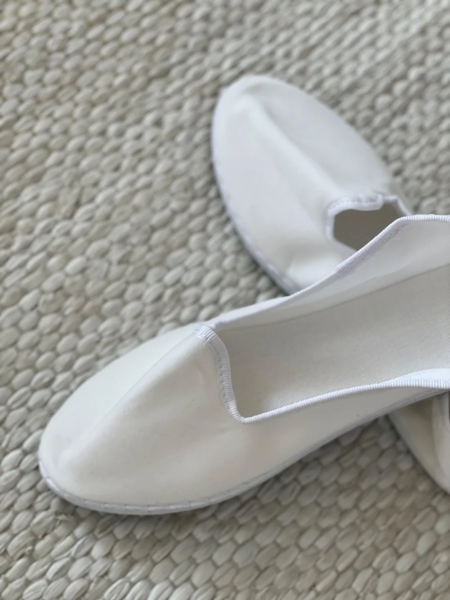 Friulane classiche con punta stondata, esterno in velluto di cotone e rivestimento interno in cotone bianco. Suola in gomma. Calzata ridotta.